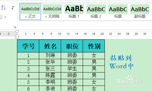 然后打开Word办公软件,将适才Excel表格内容粘贴进来,见图一...接着依次点击Word中的“页面结构”-“分栏”;