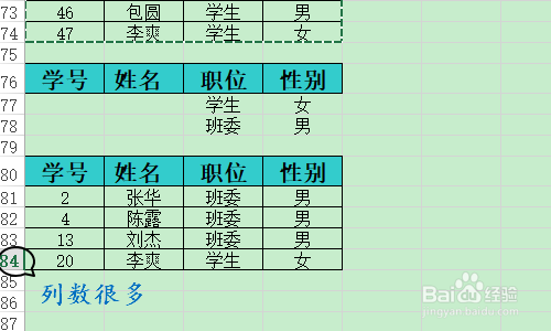 小编以下图中的Excel表格为例,我们可以看出这张表格共有80多行,可是列数却只有4列;