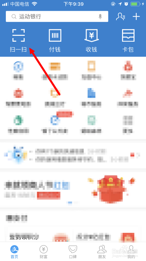 首先在手机上打开并登录支付宝App,并在首页面点击 扫一扫 。