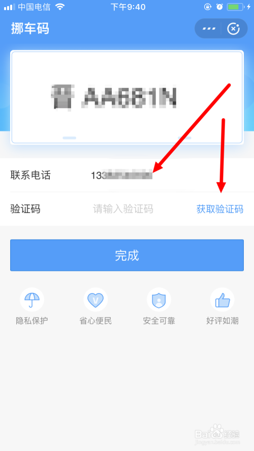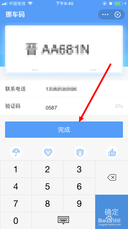 将收到的验证码填入 验证码 处,并点击 完当作 。