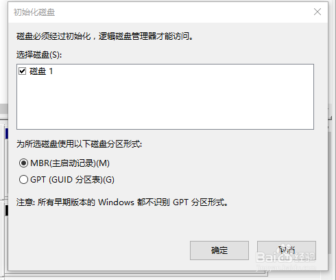 旧平台只能选择MBR,新平台可以选择GPT,若是看不懂,直接点击“确定”就行了。