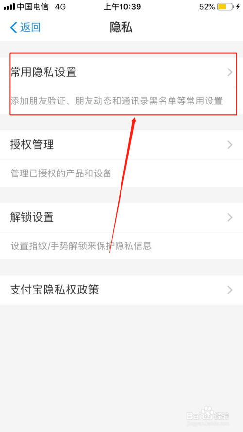 点击【常用隐私设置】