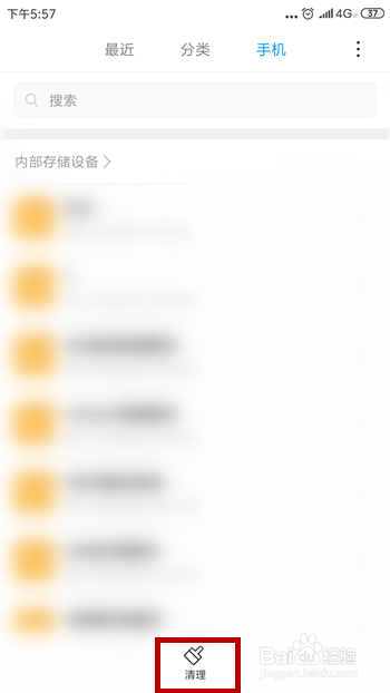 然后点击【手机】,查看下本身的存储空间有多大,这里我们最好清理一下,点击【清理】。