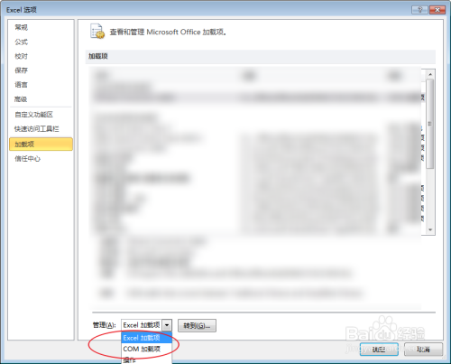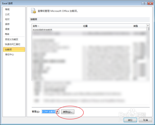 点击com加载项,点击转到。