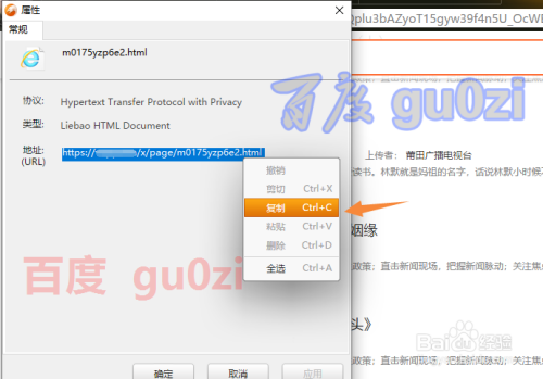 在链接属性对话框中,选择地址后,进行 复制的操作,