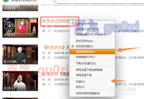 在找到的视频题目上,点击右键,有呈现复制链接地址的话,可以直接点击,没有这项的话,则打开 属性,