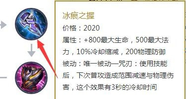 下一步我们可以出冰痕之握这件装备来增添我们的生命值和护甲,而且这件装备还能削减技术冷却时候。