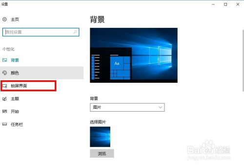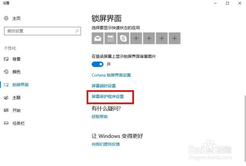 接着进入到个性化的设置界面,选择左侧的锁屏界面选项,申明一下,这里是win10系统,所以只能先选择锁屏界面选项,其他系统可以直接选择屏保程序,如图所示: