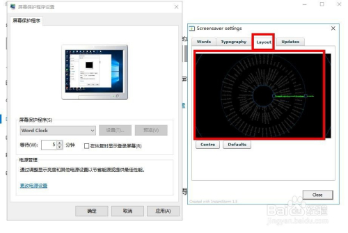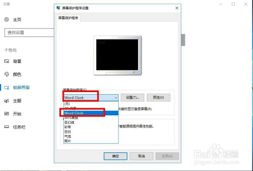 接着进入到屏保的设置界面,选择适才安装好的word clock选项,然后点击右侧的设置选项,如图所示: