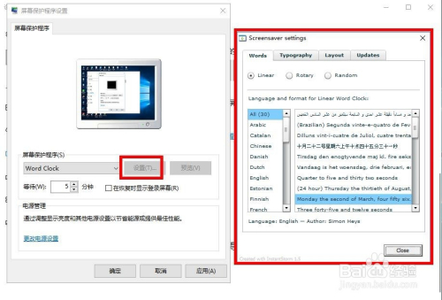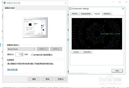 设置完以上的三个大项,就算是设置当作功了,回到屏保程序的设置界面,可以点击后方的预览,也可以直接设置好屏保的时候,点击下方确定,这样word clock屏保就当作功启用了,不会的伴侣从速去尝尝吧。