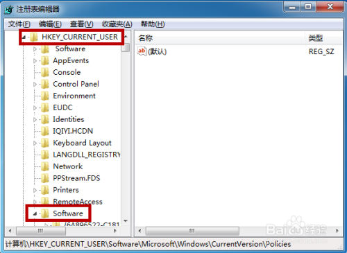 打开注册表界面后首先睁开文件夹【HKEY_CURRENT_USER】—>【Software】。
