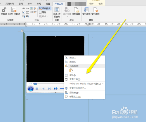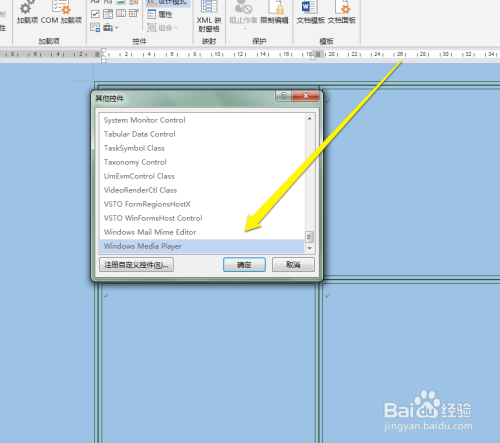 找到Media Player控件后,点击确定按钮,word界面中呈现Media Player控件图标。