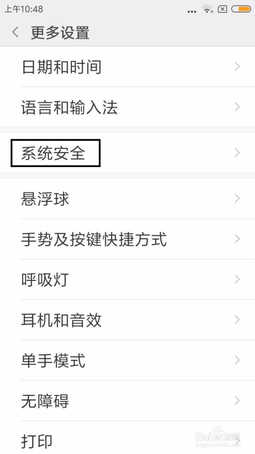 打开更多设置选项中点击“系统平安”选项。
