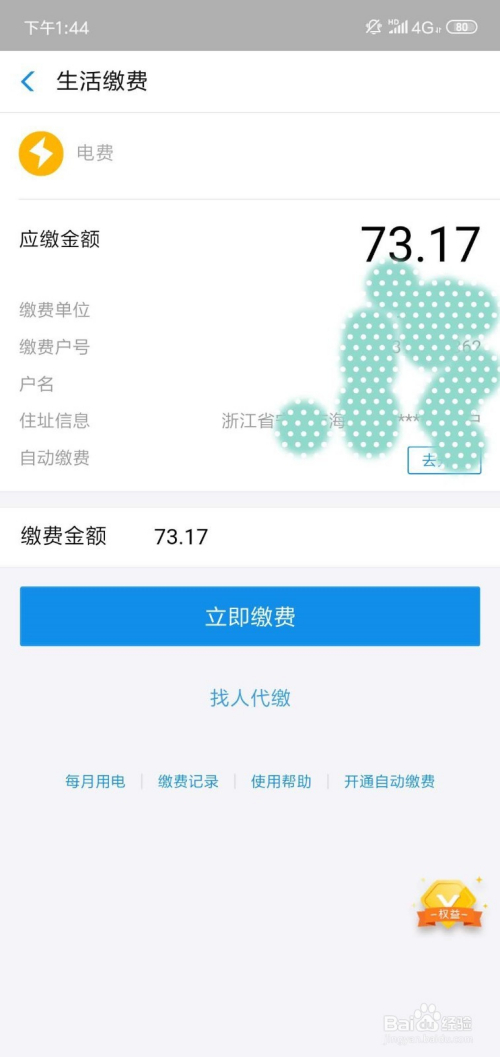 比及了需要缴费的时辰,我们打开电费,页面就会显示我们需要交几多费用;
