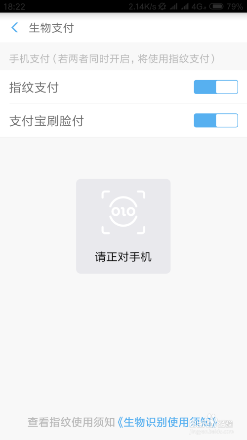 我们最后正对着手机屏幕就可以开启我们的人脸支付啦!大师快去试一试吧。