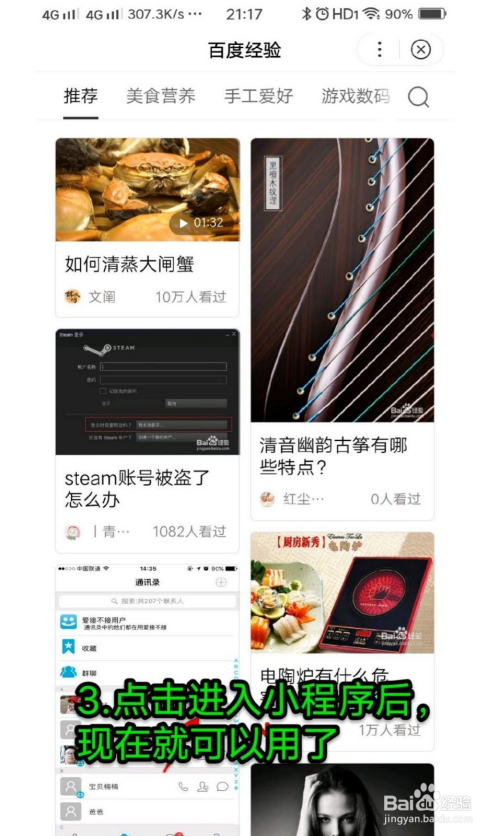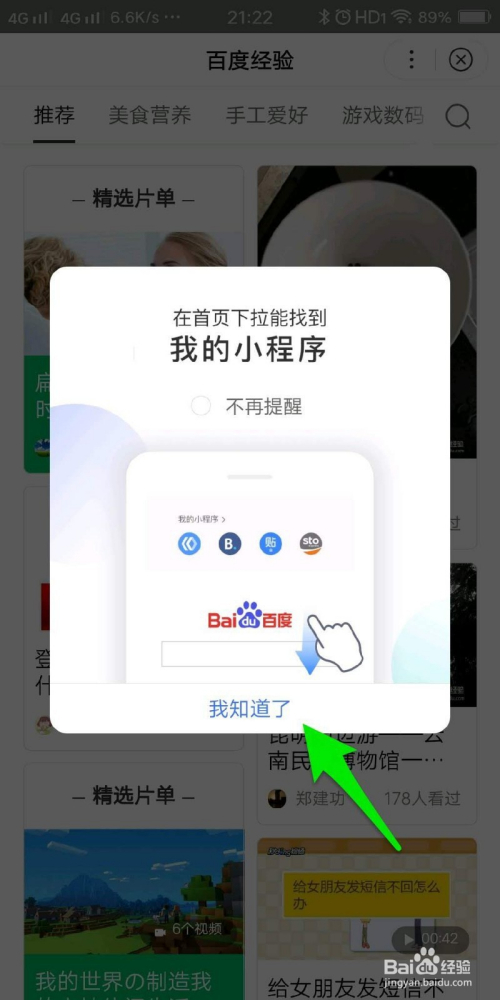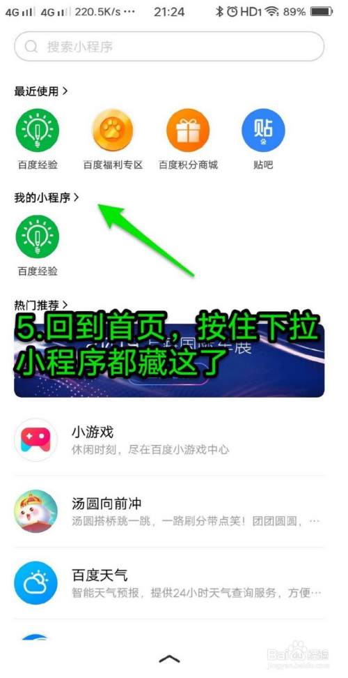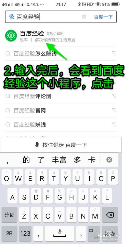 输入完后,会看到百度经验小程序图标就跳出来了,然后点击。