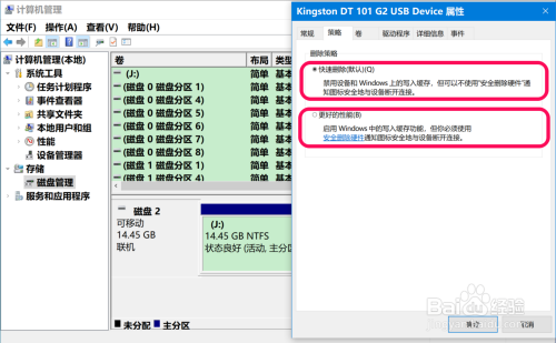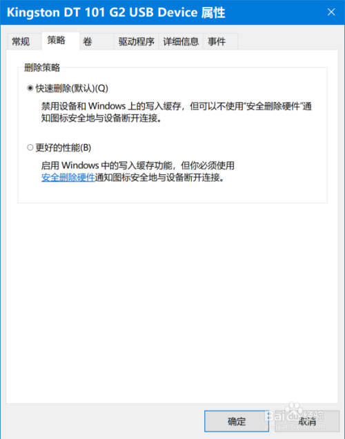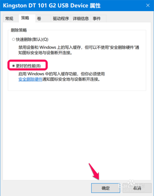 若是喜好 优异的写入机能,且具有较好的习惯进行【平安删除硬件】操作,则可以选择【更好的机能(B)】策略。