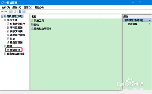 在计较机办理窗口中,我们再点击窗口左侧的【磁盘办理】;