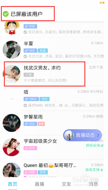 这时,你将会看到该用户就被屏障了,如图所示