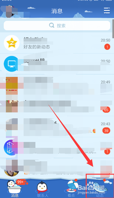 进入QQ界面,点击右下角的动态,如图所示