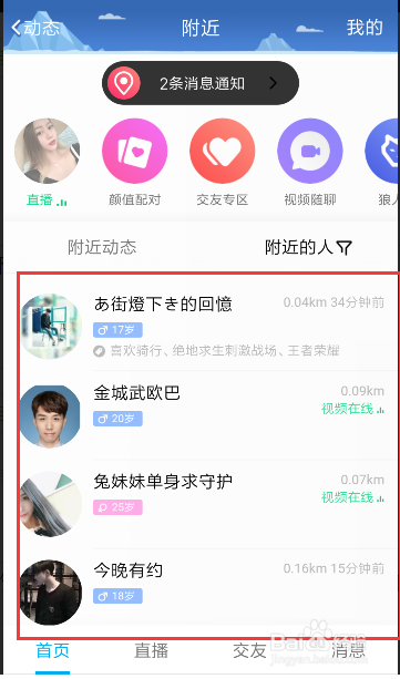 进入四周的页面,点击四周的人,如图所示