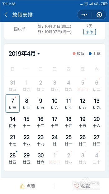 我们可以下拉,鄙人方可看到具体的日历,这样能帮忙我们领会放假放置。
