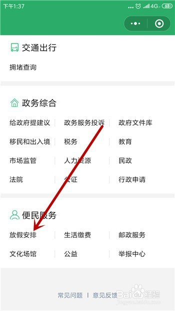 在城市办事里下拉界面点击打开【便平易近办事】下的【放假放置】。