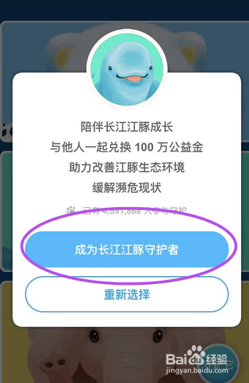 之后会呈现确定领养的弹框,若是不需要从头选择小动物的话就直接点击页面中的当作为该小动物的守护者按钮即可。