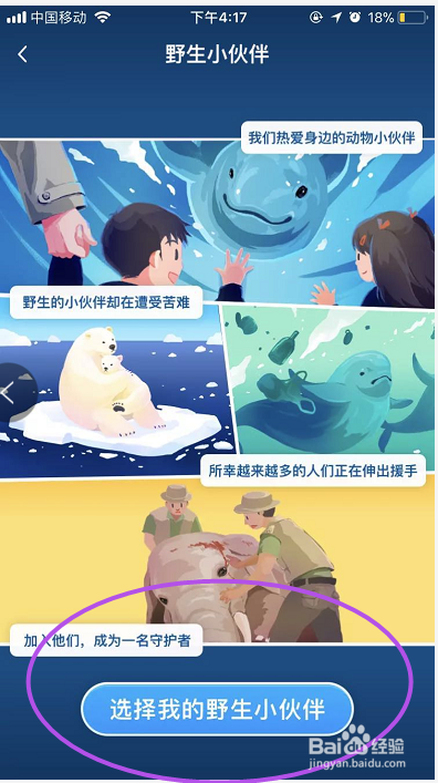 进入到野生小伙伴活动页面之后,点击页面底部的“选择我的野生小伙伴”按钮或者直接点击页面。