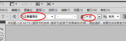 选择文字东西就是左边菜单上那个T,在选择字号的大小和字体我们在这里选择了徐静蕾字体手写体。颜色选择黑色