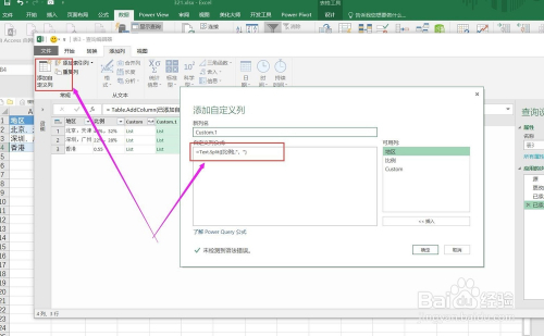添加自界说列,按照标识符“,”将地域列拆分。公式为=Text.Split([地域],”,”)