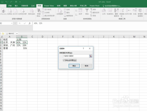 以下图为例,需要将A列的地域数据和B列的比例数据分拆并一一对应。