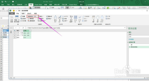 进入查询编纂器之后,选中”比例”列,将数据类型点窜为文本。