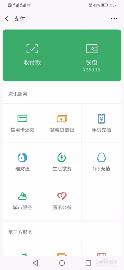 在小我本家儿页点击“支付”,进入支付功能页面。