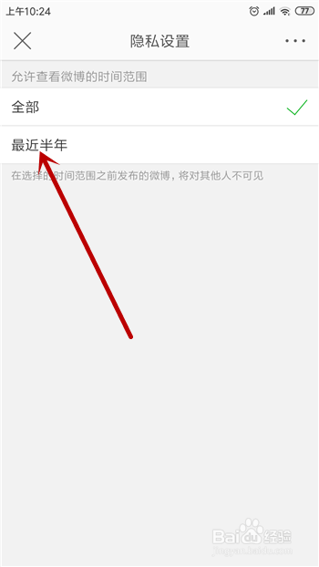 这样即可找到【微博可见时候规模】,默认的是全数,点击一下。