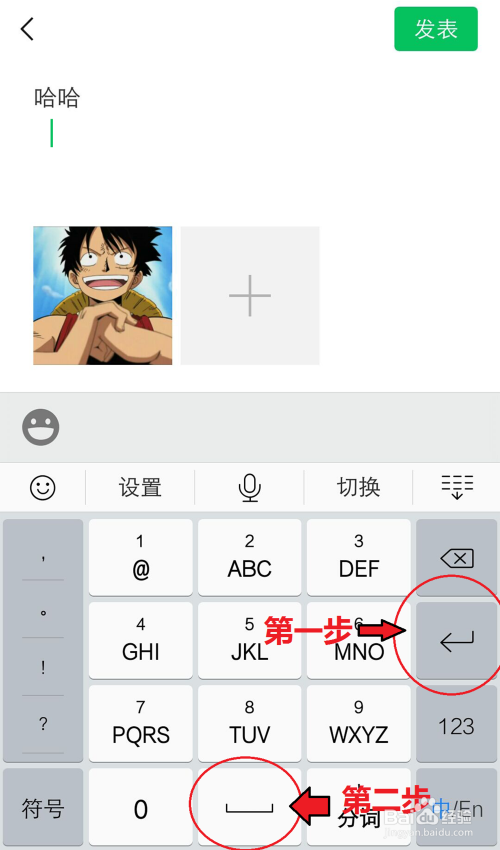 进入文字编纂页面,第一行输入要显示的文字,好比:哈哈。