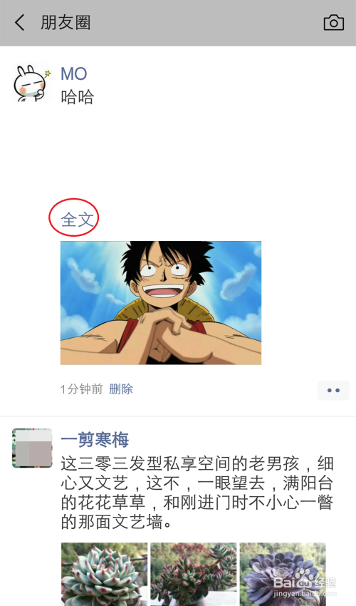 发送当作功后,在朋友圈的展示结果如图所示,到时点击【全文】就可以看到埋没的文字段子了。