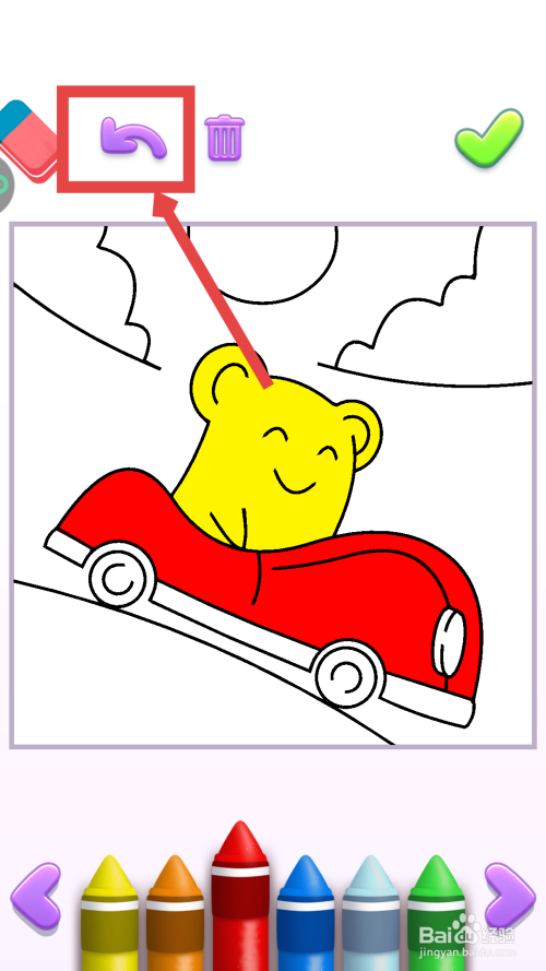 也可以利用左上角橡皮擦右边的撤销箭头,撤销失落选择颜色涂的整个步调。