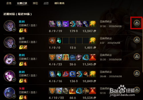 在角逐记实中找到想要不雅看回放的角逐,点击后方的【下载】。