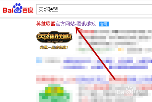 打开百度搜刮【英雄联盟】,然后点击打开英雄联盟官网。