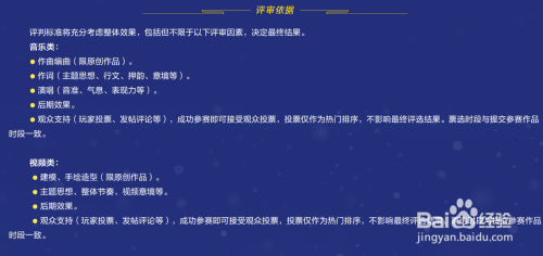 3同人原创作品的作曲、编曲、作词或视频创作等都为参赛人或团队自立原创,不得利用已有作品、他人作品的曲子进行填词或进行视频素材二次创作,如发现作品存在窃取、侵权等不实施为,将被直接打消角逐资格。