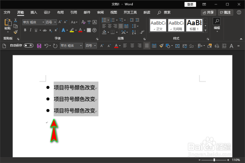 - 在word中,项目符号的颜色是可以零丁去设置的;
