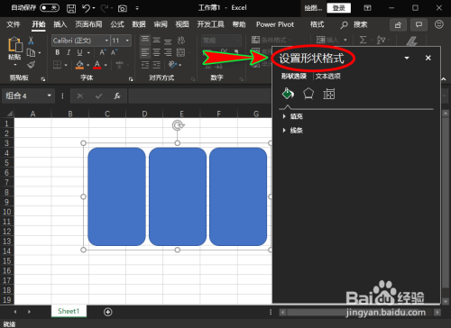 在“外形”扩展框中我们选择一个“圆角矩形”,并在excel表格中画一个“圆角长方形”。如图所示: