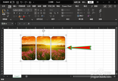 需要裁剪的图片填充到外形中后,我们封闭对话窗,此时excel就将需要裁剪的图片朋分当作不相连的三部门了!如图所示: