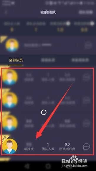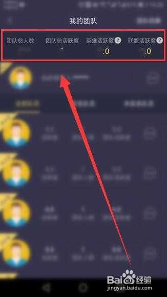 我的团队窗口的最上方,显示了团队人数和活跃度的相关信息。