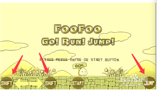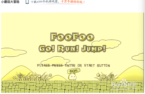 在游戏网站找到“小蘑菇大冒险”后,点“起头游戏”,稍等加载完毕后,进入游戏界面,下面用鼠标点击⬅️➡️箭头是节制小蘑菇进步和撤退退却的,最右下"jump"是跳跃键如下图1所示,中心的“start”是选集键。同时对应电脑上的箭头操作键。