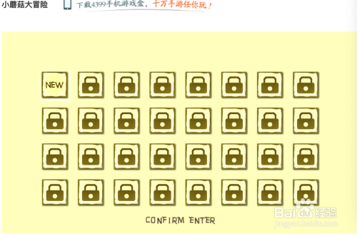当点选集牌后,即可进入选集界面,点第一个“new”即可进入游戏界面,用鼠标直接点击摆布键也可以,或者直接操作电脑上的箭头键也可以,点➡️键,小蘑菇即可标的目的右移动。