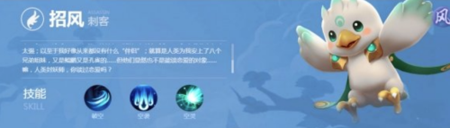 最后一个就是招风了!在游戏中,空中的妖灵很少,若是有人喜好飞翔的妖灵的话可以选择哦。