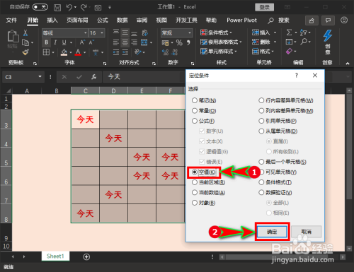 在“定位前提”对话窗中,我们选择“空值”项,并单击“确定”按钮。如图所示: