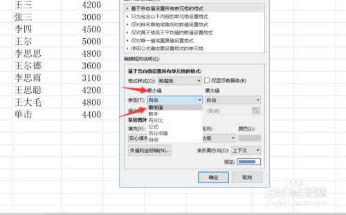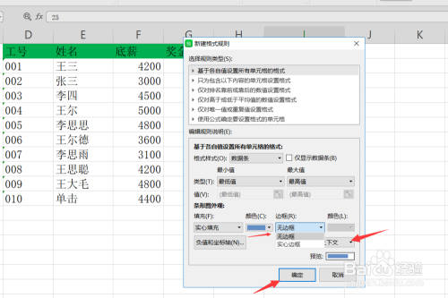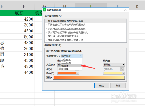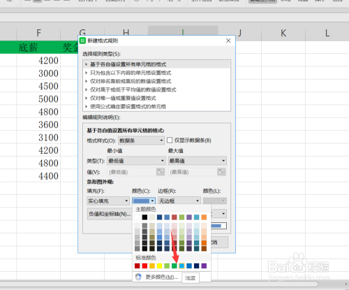 点击新建法则之后,我们选择法则类型是基于各自值设置所有单位格格局,选择格局样式为数据条如下图所示。